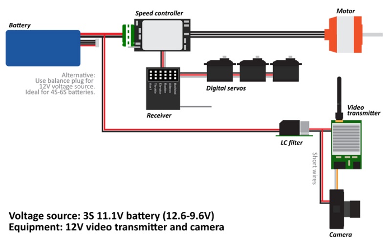 FPV画面中常出现黑色的横线干扰,特别是一启动电机后更明显。因为电机消耗的电流大且波动频繁,同样接入动力电池的FPV摄像头和图传的供电就很不稳定,很容易受到影响。最简单的解决办法是用另一块电池给摄像头和图传单独供电。但另一块电池会很重啊,还麻烦。所以另一个办法就是接入一个简单的滤波电路来滤除大部分干扰。DIY一个轻松简单愉快~